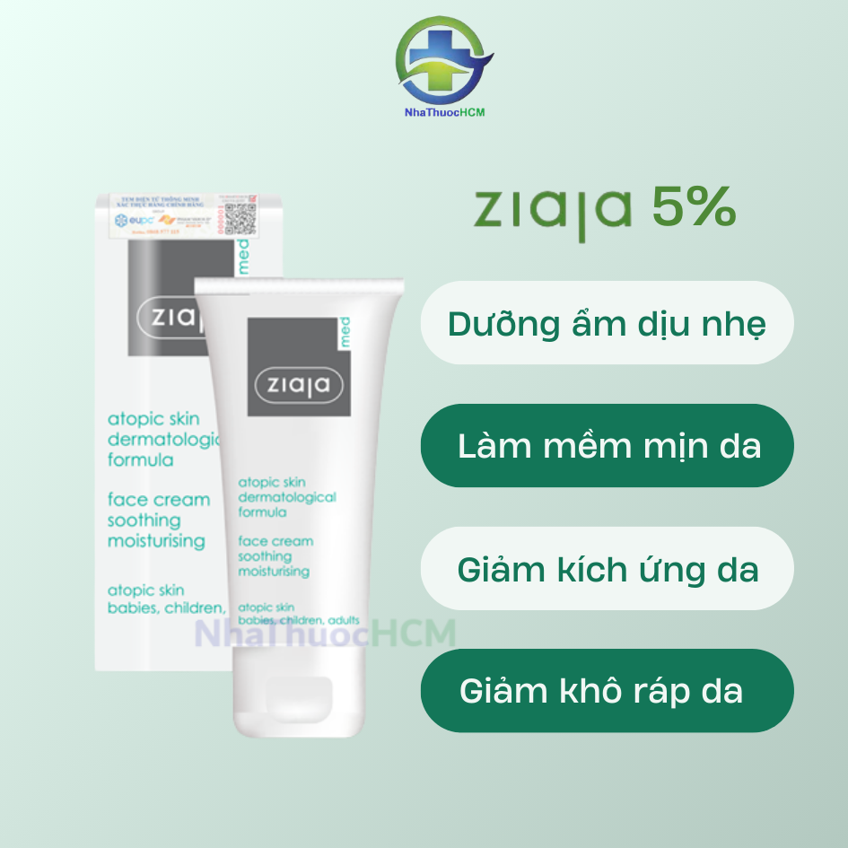 Kem dưỡng ẩm Ziaja 5% được phân phối bới nhathuochcm.com là sản phẩm Chính Hãng, được sản xuất và nhập khẩu từ Ba Lan.