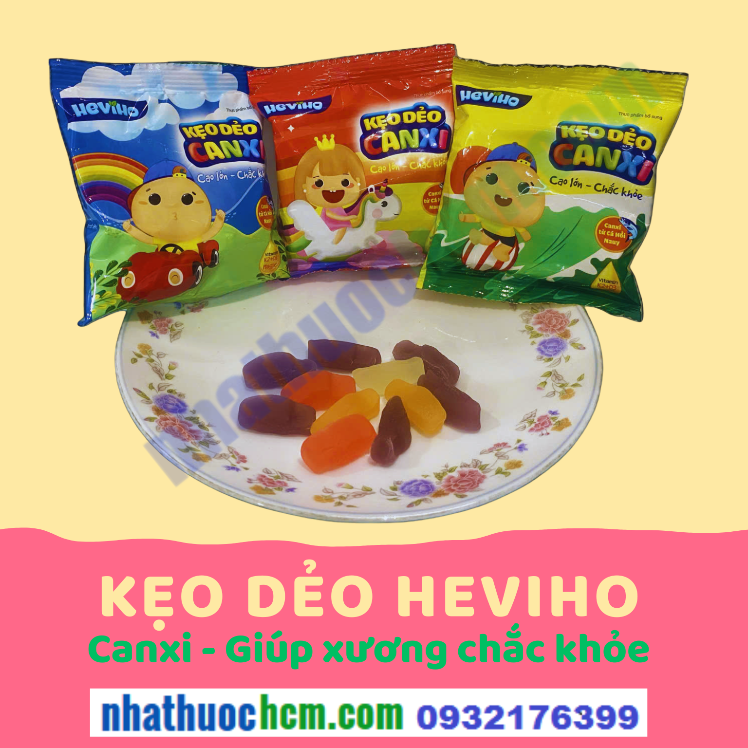 Kẹo dẻo vitamin Heviho Canxi được sản xuất bởi công ty sản xuất bánh kẹo Bibica, Việt Nam.